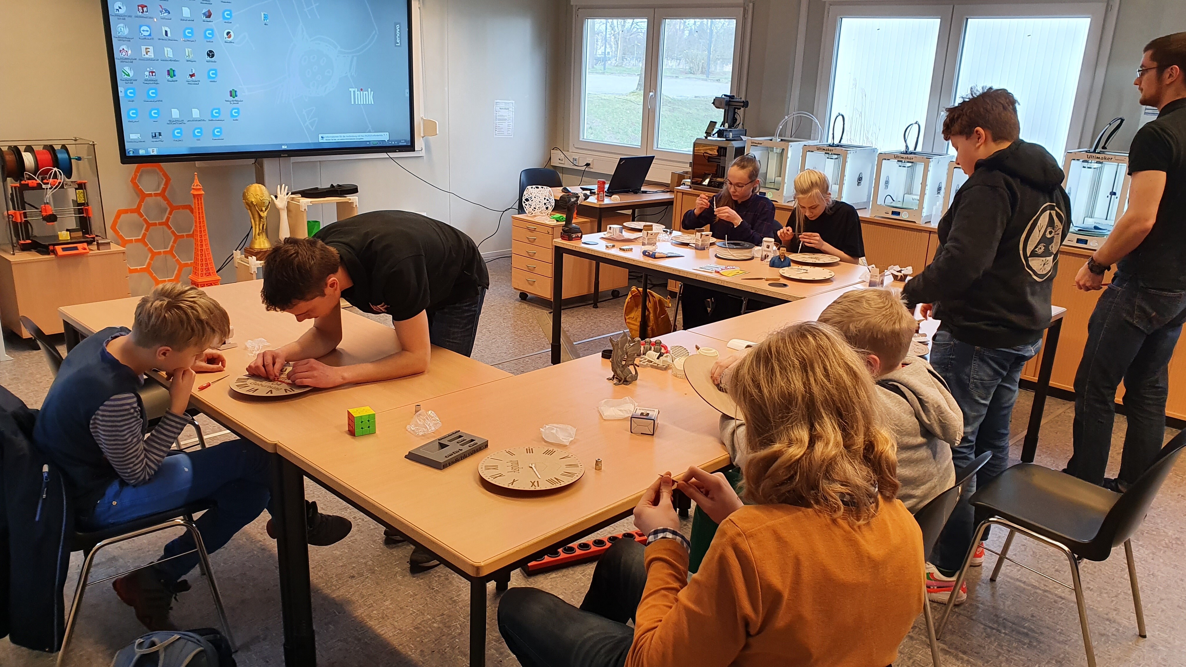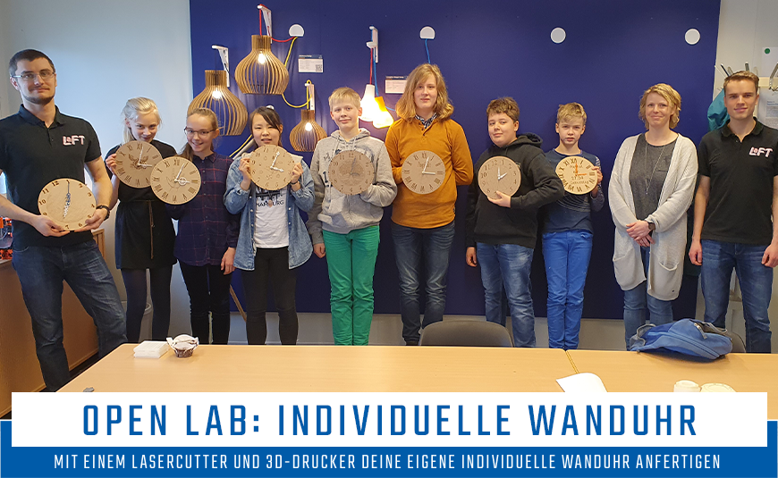 Am 7. März konnten acht Jugendliche mit einem Lasercutter und 3D-Drucker ihre eigene individuelle Wanduhr im Laboratorium Fertigungstechnik LaFT der Helmut-Schmidt-Universität anfertigen.